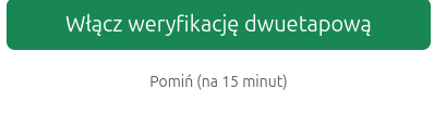 Jeśli chwilowo nie masz dostępu do telefonu lub skrzynki e-mail, możesz pominąć weryfikację klikając „Pomiń (na 15 minut)". System śledzi liczbę pominięć: