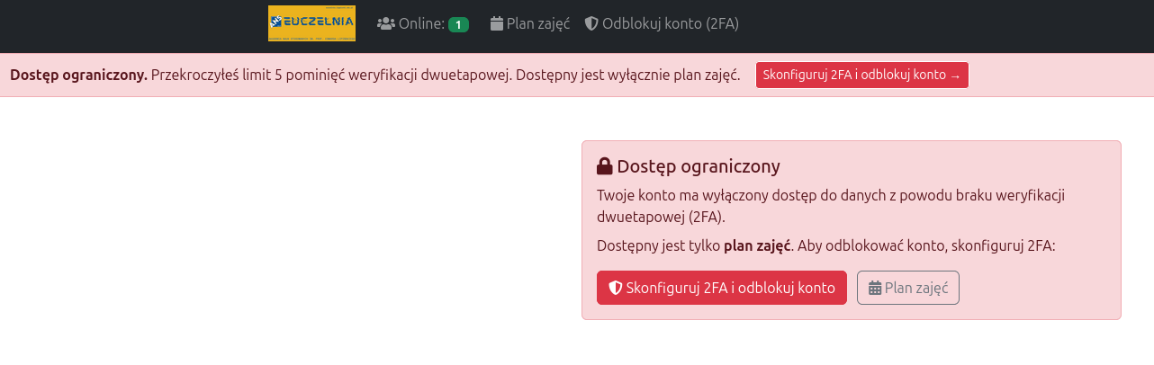 - Strona konfiguracji 2FA (w celu odblokowania konta)